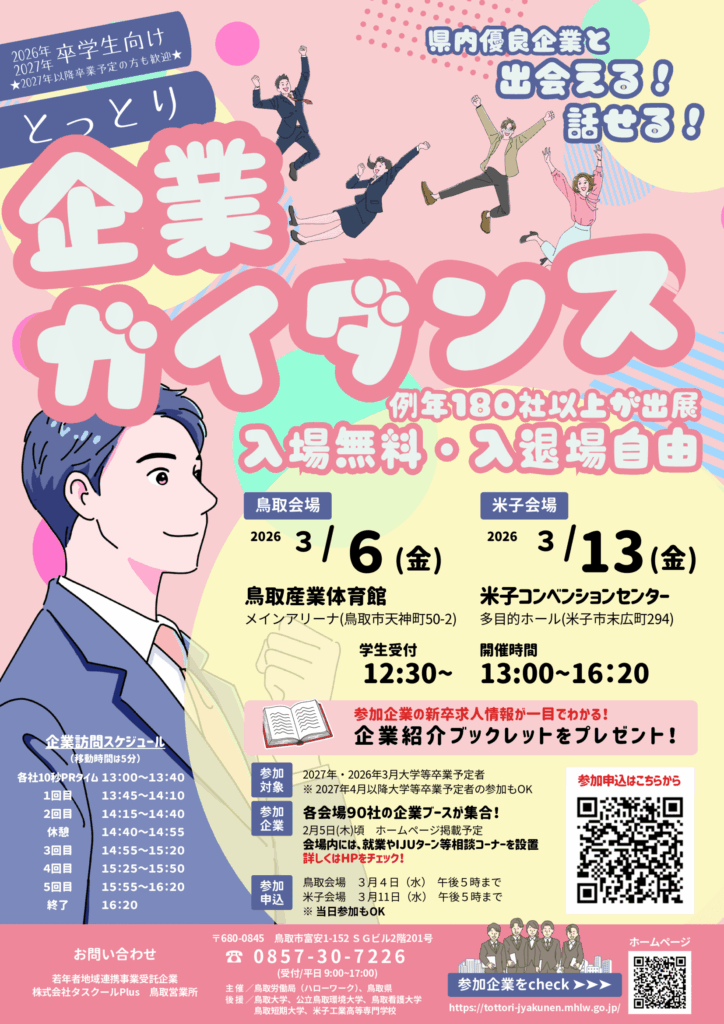 【学生の皆さまへ】「とっとり企業ガイダンス」のご案内(対象:2026年3月・2027年3月以降に大学等を卒業予定の方)
